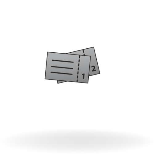 Legen Sie Ihren Entwurf für die Eintrittskarten in einer Größe von 55 x 105 mm an. Die Karten werden auf Wunsch mit einer fortlaufenden Nummer versehen und können an eine beliebigen Stelle waagerecht oder senkrecht perforiert werden.
